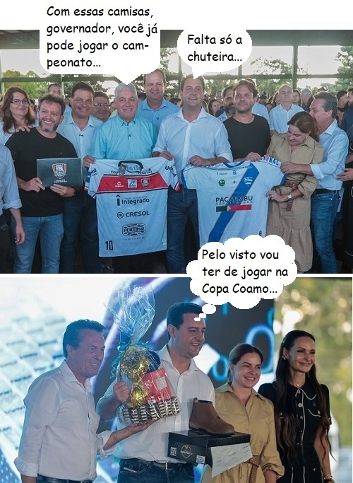 Os cliques são de sexta-feira, durante a visita do governador Ratinho Jr a Campo Mourão. Não faltaram os tradicionais presentinhos para ele, como camisas do Nacional e do Campo Mourão Futsal, cesta de Páscoa e até um par de botinas...