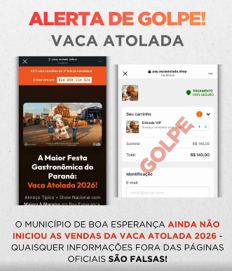 As informações oficiais sobre a 26ª Vaca Atolada serão divulgadas exclusivamente nas páginas oficiais do município;