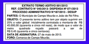 A prefeitura publicou nesta sexta-feira um aditivo ao contrato feito com João de Ré Filho para roçadas de terrenos baldios.