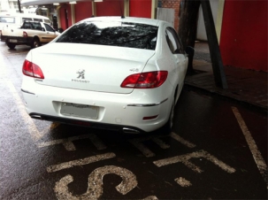 “Segue foto de um tremendo descaso e falta de respeito. É bom mostrar para o pessoal ter mais consciência. Vi a motorista saindo do carrro e não era ninguém portador de deficiência”. Monique