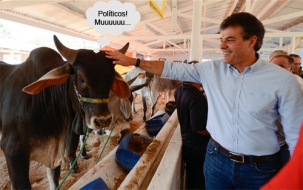 A participar da Festa do Carneiro no Buraco, o governador Beto Richa não deixou de dar uma passadinha pelos pavilhões de gado, com direito à famosa pose ao lado dos bichos. Ah, antes isso que ir pro frigorífico...