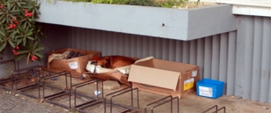Mas tem gente que em dia de frio coloca caixas forradas para os animais de rua.