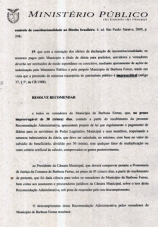 O Ministério Público quer que em 30 dias a Câmara aprove lei reduzindo o valor das diárias do prefeito e dos vereadores de Barbosa Ferraz.