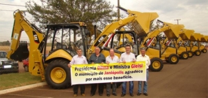 Dez municípios da região - Boa Esperança, Farol, Goioerê, Janiópolis, Juranda, Mamborê, Moreira Sales, Quarto Centenário, Rancho Alegre do Oeste e Ubiratã - receberam retroescavadeiras no último sábado. A entrega aconteceu em Toledo. As máquinas são do PAC 2. O prefeito Lola Poera levou até faixa para agradecer a presidente Dilma e a ministra Gleisi Hoffmann. Hummmm...
