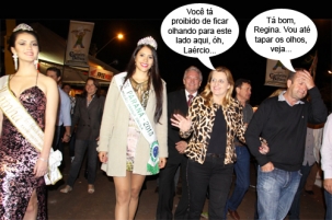O clic é da abertura da 23ª Festa Nacional do Carneiro no Buraco, nesta terça-feira à noite. Após os discursos de praxe, as autoridades fizeram uma caminhada pelo Parque de Exposições. A prefeita Regina Dubay foi à frente, ao lado do “primeiro-damo” Laércio Dubay, da rainha da festa e da miss Paraná.