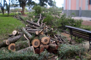 “Boca Santa mostrou com ficou a praça São José após o corte de cinco árvores ao lado da Catedral. Agora vejam a foto dessas árvores derrubadas na sexta-feira”. Fraterno Maria Nunes