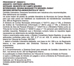 O Tribunal de Contas do Estado publicou nesta segunda-feira a certidão liberatória de Campo Mourão.