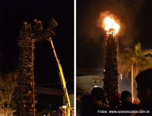 As fotos são deste fim de semana, em Roncador, onde aconteceu a tradicional queima da fogueira no Dia de São Pedro (29 de junho). E põe tradicional nisso. Foi a 69ª edição da festa, que precisa até da ajuda de um guindaste para que a fogueira seja acesa. São Pedro é padroeiro de Roncador, mas não é sozinho, não. A “tarefa” é dividida com São Nicolau (6 de dezembro). Ah, se é possível até dois papas...