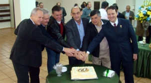 A Acicam abriu nesta quinta-feira as comemorações pelos seus 60 anos. Houve um café da manhã, lançamento de selo comemorativo dos Correios, inauguração de novo quadro na galeria dos ex-presidentes e corte de um bolo. O presidente Marcelo Chiroli teve a ajuda de cinco ex-presidentes no corte desse bolo – Nelson Botega, Nestor Bisi, Eloi Bonkoski, João Breschiliare e Marcos Corpa. Ô faquinha poderosa, hein?...