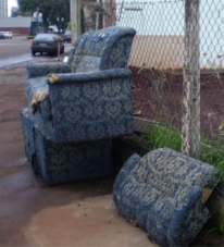 Foto da av. Capitão Índio Bandeira, na saída pra Peabiru, onde sofás velhos foram abandonados na calçada. Fraterno Maria Nunes