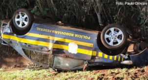 Uma viatura da Polícia Rodoviária Federal de Ubiratã capotou na manhã desta quarta-feira quando fazia uma perseguição.