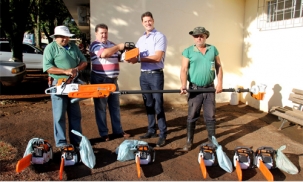Parece cenário de clássico do cinema de terror, mas é só para mostrar a chegada de novos equipamentos na Secretaria de Agricultura e Meio Ambiente. São três cortadores de grama, um soprador de folhas, um podador de cerca viva, cinco roçadeiras, seis motosserras e um moto-poda. E mato e grama pra cortar é que o não faltam, hein?...