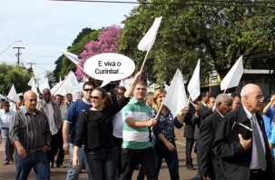 A deputada Marla Tureck, que é da igreja Assembleia de Deus, participou neste sábado da Marcha para Jesus em Campo Mourão. Ao lado dela estão o vereador Edilson Martins e a prefeita Regina Dubay. O ex-prefeito Nelson Tureck também esteve por lá. Marla torce pelo Corinthians, que disputa neste domingo a final do Paulistão contra o Santos. O deputado Douglas Fabrício é santista. Viu só, adversários até nisso...