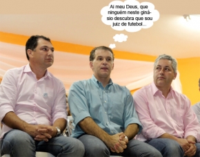 O clic é da abertura da fase regional dos 60º Jogos Escolares do Paraná, nesta segunda-feira, em Mamborê. O secretário de Estado Evandro Rogério Roman (Esportes) esteve por lá e ficou entre o prefeito Nei Calori e o deputado Douglas Fabrício. Roman é aquele mesmo, o árbitro de futebol. Viu só a vantagem, sem uniforme pode o ginásio estar lotado que ninguém xinga...
