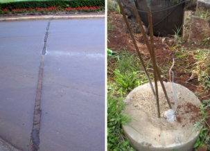 “A foto à esquerda é da av. Irmãos Pereira, esquina com a rua Harrison José Borges. Mostra um dos serviços mal feitos. A foto da direita é da av. Jorge Walter, mostrando a falta do poste e da tampa do bueiro. É preciso zelar pela nossa cidade”. Fraterno Maria Nunes