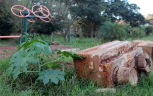 A prefeitura desmontou tão rapidinho a academia da terceira idade do Parque do Lago, no começo do ano, que criou a sensação de que o local seria reconstruído logo. Só que até agora está tudo do mesmo jeitinho que deixaram no dia da desmontagem. Equipamentos empilhados, blocos de concreto espalhados pelo gramado e mato nascendo por tudo. Até pé de mamona surgiu por ali. Cá pra nós: depois do “Prefeitura no bairro”, tá faltando um “Prefeitura no parque”...