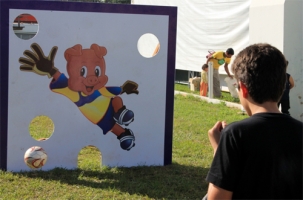 Quem levou criança pequena à Festa do Leitão Maturado, em Goioerê, teve à disposição um parquinho de diversões gratuito. Era um desses parques com brinquedos infláveis. Também havia uma brincadeira de “acertar a bola no buraco”, com o mascote da festa de enfeite. Simples, barato e eficiente, já que a criançada adorou. E como nada se cria, tudo se copia, fica aí a dica...