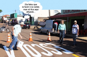 A prefeitura está pintando a sinalização horizontal nos bairros da região da Asa Leste, onde acontecem esta semana as ações do programa Prefeitura no Bairro. A prefeita Regian Dubay foi lá ver de perto. Digamos que ela “vai fazer, vai cuidar” e vai olhar se estão fazendo, uai!...