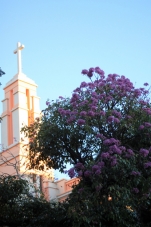 "O outono chegou e as flores roxas também".