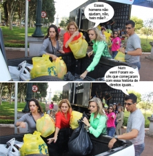Regina e a secretária-filha Anelise, que preside o Provopar, ajudaram a carregar os donativos.