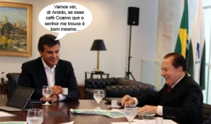 O clic é desta quarta-feira, quando o presidente da Coamo, Aroldo Gallassini, esteve com o governador Beto Richa, no Palácio Iguaçu. Entre uma conversa e outra, deu tempo para um cafezinho. E era Coamo, né?...