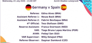 A árbitra Edina Alves, de Goioerê, foi escalada para mais um jogo da Euro Feminina, que está sendo disputada na Suíça. Desta vez é para uma das seminais, nesta quarta-feira, entre Alemanha e Espanha, em Zurique. Edina representa a Conmebol na competição europeia. Ela já apitou outras duas partidas – Dinamarca 0 x 1 Suécia e Inglaterra 4 x 0 Holanda.