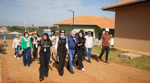 O prefeito Douglas Fabrício (Campo Mourão) visitou nesta terça-feira as obras do Condomínio do Idoso, no Residencial Bronzel 2. O empreendimento está em fase de conclusão e deve ser inaugurado este ano. São 40 casas populares de 43,81m², todas adaptadas para pessoas idosas e com deficiência. Nos espaços coletivos estão ambulatório, praça de convivência, academia ao ar livre, horta comunitária, salão de festas e quiosques de jogos.