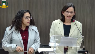 Diretoras da Associação dos Aposentados e Pensionistas do Serviço Público Municipal de Campo Mourão, Zulméia Aparecida da Silva e Elza Campanha usaram o espaço da “Tribuna Livre” na sessão da Câmara desta terça-feira. Apresentaram reivindicações, como auxílio social e mais transparência nos conselhos da Previscam e do Fundeb. Também cobraram o Piso Nacional do Magistério e criticaram a terceirização do serviço público.