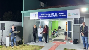 A prefeitura de Campo Mourão inaugurou na última sexta-feira a nova unidade básica de saúde da comunidade rural Km 128. Fica às margens da BR 487 (Boiadeira). O investimento foi de R$ 450 mil. A unidade recebeu o nome de João Alves, em homenagem ao ex-vereador que morreu em 2022. Entre os presentes, o prefeito Douglas Fabrício, o ex-prefeito Tauillo Tezelli (que iniciou a obra) e quatro vereadores.