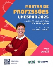 A Unespar realiza de quarta a sexta a Mostra de Profissões 2025. No câmpus de Campo Mourão será na quarta (manhã, tarde e noite) e quinta (manhã). Na oportunidade, serão apresentados à comunidade os cursos de graduação e pós-graduação, bem como os projetos de ensino, pesquisa e extensão da instituição. O objetivo é estimular estudantes do ensino médio, a terem vontade de continuar estudando.