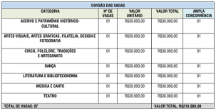 Estão disponíveis R$ 210 mil em sete categorias – R$ 30 mil para cada uma (veja quadro acima).