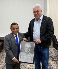 Sem nenhum famoso ou autoridade para recepcionar em Campo Mourão? Então, Magnum Alves, o recepcionista oficial da cidade faz suas visitinhas. Nesta terça-feira ele esteve com o prefeito Douglas Fabrício. Levou de presente um desenho do prefeito. E saiu convidado para a Festa Nacional do Carneiro no Buraco.