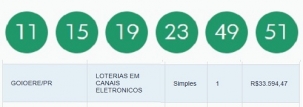 Uma aposta de Goiânia acertou sozinha as seis dezenas da Mega Sena sorteadas nesta terça-feira. Levou R$ 50,7 milhões. A quina teve 97 apostas ganhadoras e cada uma faturou R$ 33,5 mil. Sete são do Paraná, sendo uma delas feita em Goioerê, através de canais eletrônicos.