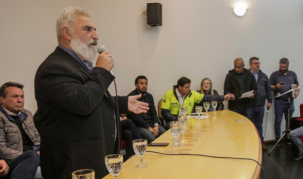 Same Saab, prefeito de Iretama e presidente da Comcam, durante reunião com a presença de cinco secretários de Estado e do presidente da Assembleia Legislativa, nomes que são pré-candidatos a governador e a senador; nesta sexta-feira, em Campo Mourão.