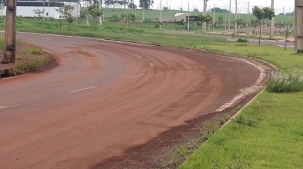 Já faz uns dias que na curva em frente a Santa Casa na av. João Batista Salvadori está com a pista cheia de pedrisco e terra em razão de caminhões de obras próximas. De quem é a responsabilidade da limpeza na via neste caso?