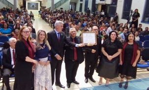 Neste domingo à noite, a Câmara de Campo Mourão foi à igreja Assembleia de Deus entregar moção para o Coral Exército da Salvação, pelos 70 anos de atividades. A proposta foi do vereador Edilson Martins, que entregou a homenagem junto com a vereadora Eliane do Café.