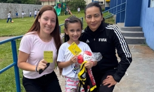 A árbitra Fifa Edina Alves Batista esteve nesta quinta-feira no Cmei Maria Zilda, em Goioerê. Foi conhecer a pequena Sophia Alves Desanoski, que durante o desfile cívico de 7 de Setembro representou a famosa árbitra goioerense. Edina aproveitou para conhecer a estrutura da creche e conversar com a equipe pedagógica e com os profissionais de apoio.