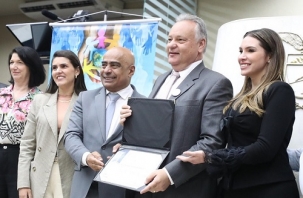 Aconteceu nesta terça-feira, na Assembleia Legislativa, em Curitiba, a entrega do 13º Prêmio Gestor Público Paraná. O evento é uma iniciativa do Sindicato dos Auditores Fiscais da Receita do Estado do Paraná, com apoio da Alep e do Tribunal de Contas do Estado. O prêmio principal saiu para Mercedes, mas outros 35 projetos foram premiados, sendo um deles de Ubiratã – “Desenvolvimento Sustentável com Responsabilidade Social e Ambiental”. O prefeito Fábio D’Alécio estava lá para recebê-lo.