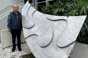 Ricardo Calderari, engenheiro agrônomo e familiar de Fernando Calderari, esteve em Curitiba para visitar a exposição “Calderari: amor além do mar”, em cartaz no Museu Casa Alfredo Andersen. Foi ele quem repassou, por telefone, em 1975, as especificações do monumento do Pró-Solo a Fernando Calderari, um dos autores da obra, que também integra a exposição.