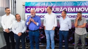 Em tempo: Caxão chegou logo após a fala de Douglas. Também participaram os prefeitos Marcos Lopes (Peabiru), Pedro Coelho (Goioerê) e Sebastião Martinez (Mamborê).