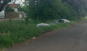 Na rua Recelene Cavalcante Teixeira, mato alto e vários colchões jogados.