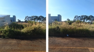 Mato muito alto e já chegando na rua em dois terrenos próximos à Colacril e à escola Eroni Maciel Ribas.