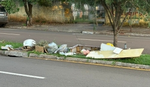 No canteiro da Av. Goioerê, próximo à rua Miguel Luiz Pereira, há descarte irregular de lixo. Entre os materiais jogados no local, encontra-se até um vaso sanitário. Fica o alerta: canteiro não é lugar para lixo. É preciso respeito com a cidade e com o espaço público.