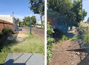 “De um lado ou de outro da mesma quadra, na av. Guilherme de Paula Xavier, próximo ao Colégio Estadual e Unespar, o pedestre não consegue andar, e ainda precisa desviar de caminhão estacionado”.