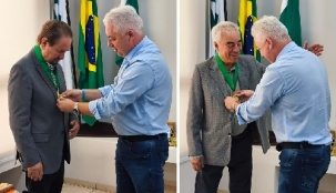O prefeito de Campo Mourão, Douglas Fabrício, entregou nesta quinta-feira a Comenda da Ordem do Mérito Mourãoense ao advogado Iran Roberto Brzezinski e ao médico Diógenes Teodoro de Oliveira. Os dois estão entre as 20 personalizadas agraciadas com a honraria no ano passado, mas não puderam comparecer ao evento oficial da entrega.