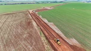 As primeiras máquinas já estão em ação para o asfaltamento da estrada do Guarani, em Mamborê.