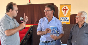 Em visita a Campo Mourão, nesta sexta-feira, o secretário de Estado do Turismo, Leonaldo Paranhos, recebeu um exemplar do livro “Eu tenho mais histórias para contar”, do jornalista Silvio César Walter. A entrega aconteceu por dois motivos. Primeiro: o livro fala do Caminho Iniciático de Santiago. Segundo: Paranhos é citado na obra. Ele era prefeito de Cascavel quando ajudou o ex-prefeito de Goioerê, Antonio Sena, que estava com problema de saúde (esta é uma das histórias contadas por Walter).