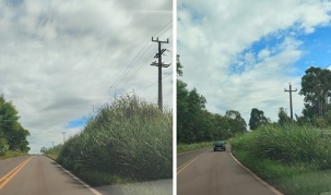 Trecho da rodovia Campo Mourão – Araruna precisando urgente de uma roçada. Alô, DER!