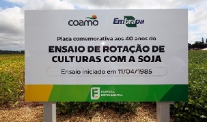 O experimento sobre rotação de culturas na Fazenda Experimental da Coamo, em Campo Mourão, completou 40 anos nesta sexta-feira. Foi iniciado em 11 de abril de 1985. É o ensaio mais longevo do Brasil. Desde a implantação, o departamento técnico da Coamo e pesquisadores da Embrapa Soja acompanham os efeitos da rotação de culturas ao longo dos anos. Entre os principais impactos estão o aumento da produtividade, a melhora das condições físicas, químicas e biológicas do solo e a lucratividade da atividade.