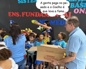 O clic é de Corumbataí do Sul, onde o prefeito Xandão Donato, foi às escolas da rede municipal e ajudou na entrega dos ovos de Páscoa. E não foi só para as crianças, não. Professores, funcionários e motoristas também tiveram direito ao chocolate...